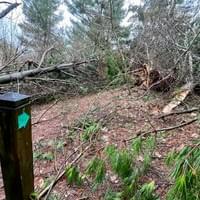 Within 2 weeks volunteer supported by professional chainsaw operators employed by Friends of Meudon Woods (made possible by generous Benefactors) re-opened all the permissive paths.